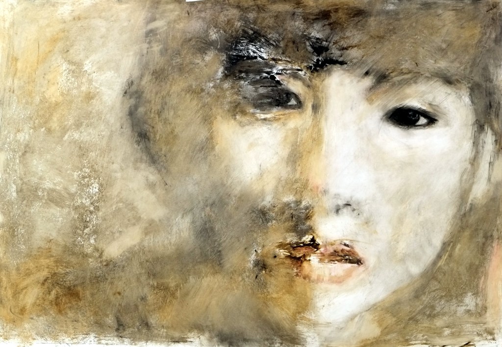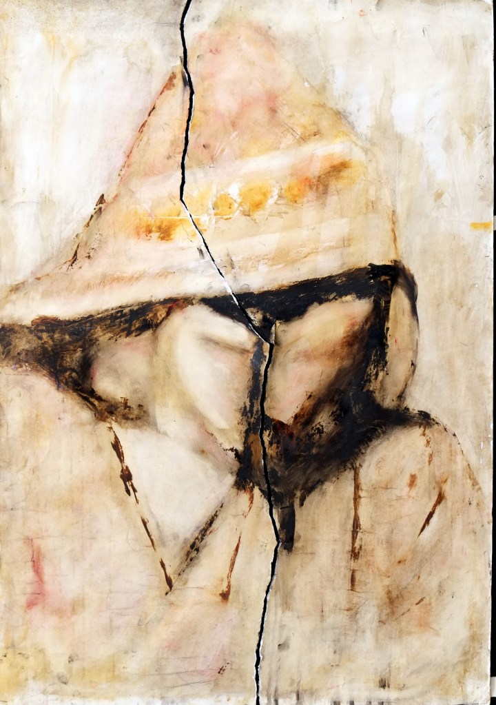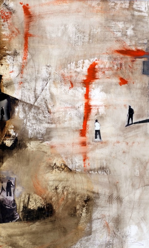 Huile et collage sur papier marouflé sur toile 100 x 70 cm