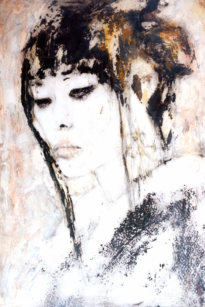 Il essaie de s’approcher d’une féminité ambiguë, qui peut lui laisser transparaître le reflet lisse de la jeunesse, et à la fois une image mordue par les épreuves du temps qui parcheminent les apparences. Il a abouti a un style très particulier qui fait sa signature, Depuis 2013, il peint, cependant il a l’impression d’avoir toujours peint, son parcours