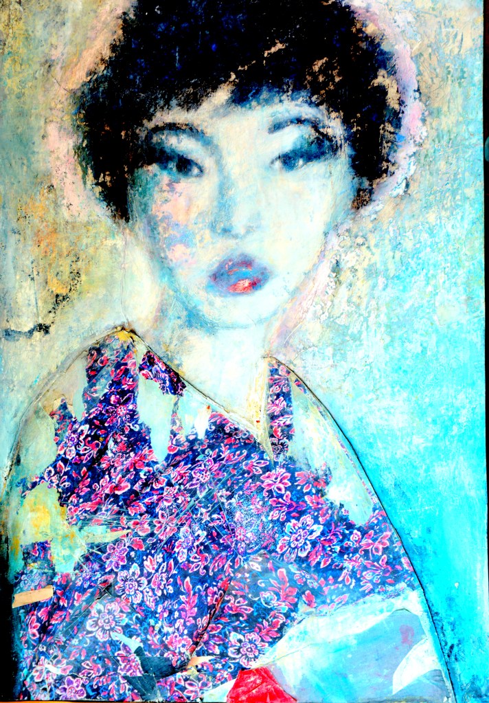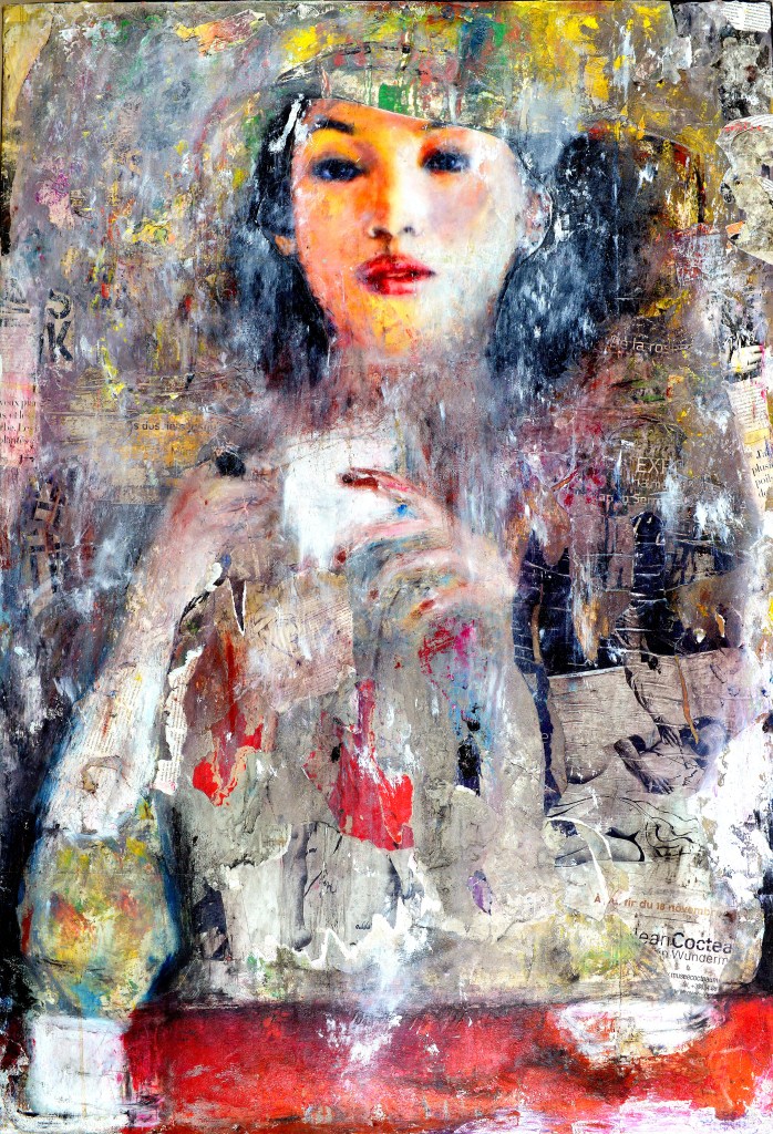 Huile collagesur papier marouflé sur toile 100 x 70 cm