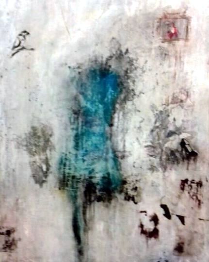 Huile ET COLLAGE sur toile 130 x 90 cm
